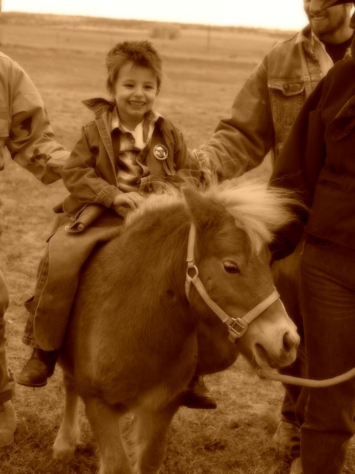 2. Oh Pam, what wonderful photos. I think my favourite is of Grampa with the two wee grandsons 'speaking' to him. I love the 'feel' of all the photos.... the kids, the pony, the cowboy hats. I. Love. cowboy. hats. Did you know that?!!