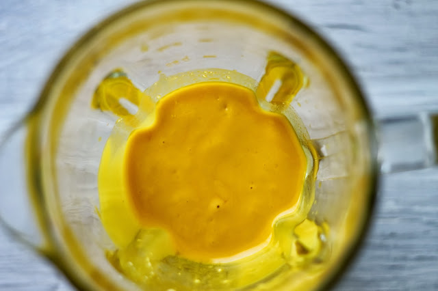 Blend all of the ingredients together in a blender, hand held blender or food processor.