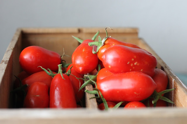 5 -6 cups skinned San Marzano Tomatoes with juice