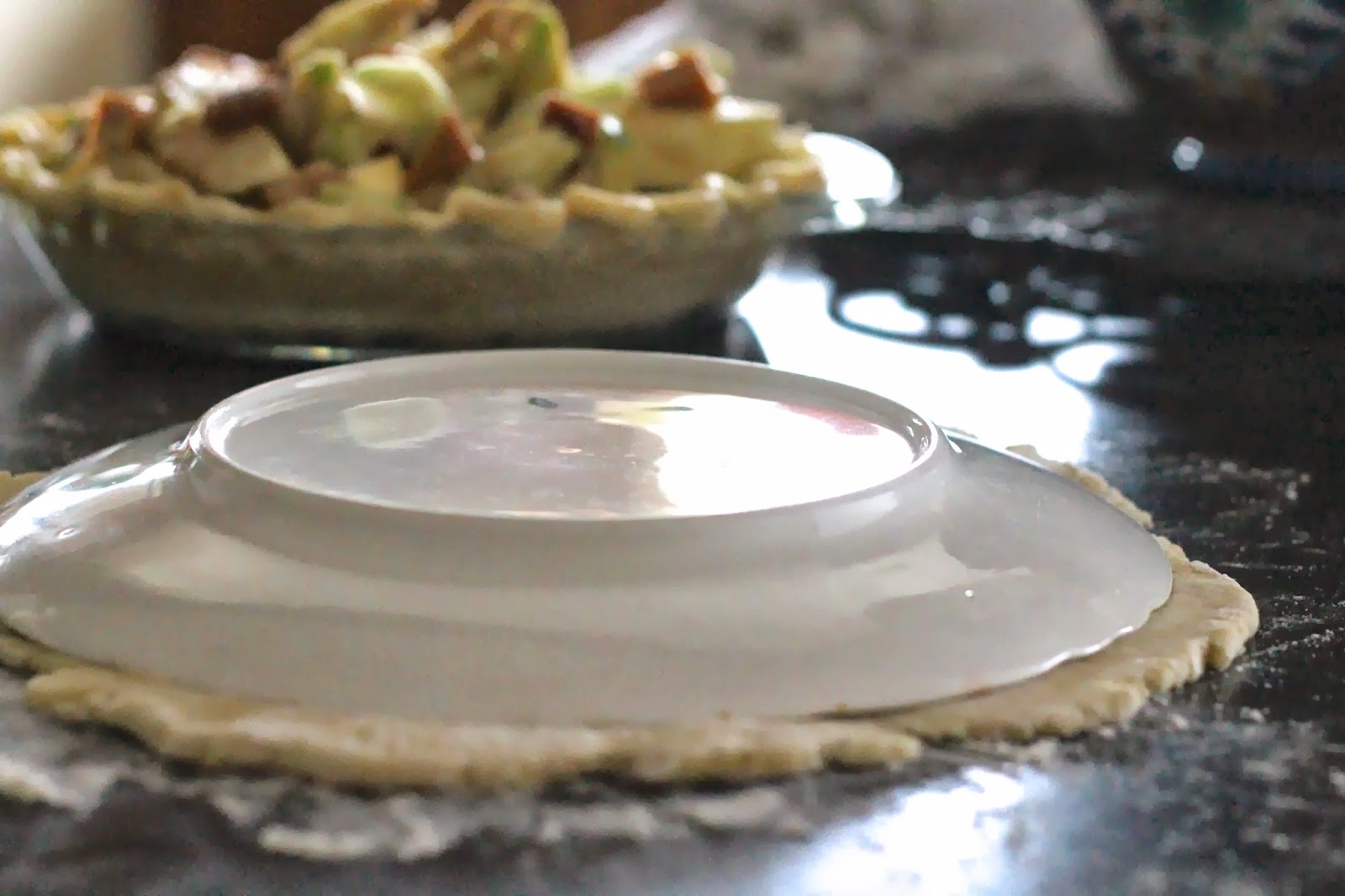 Make a double crust and divide.  Roll out one of the halves and place it in a pie pan.
