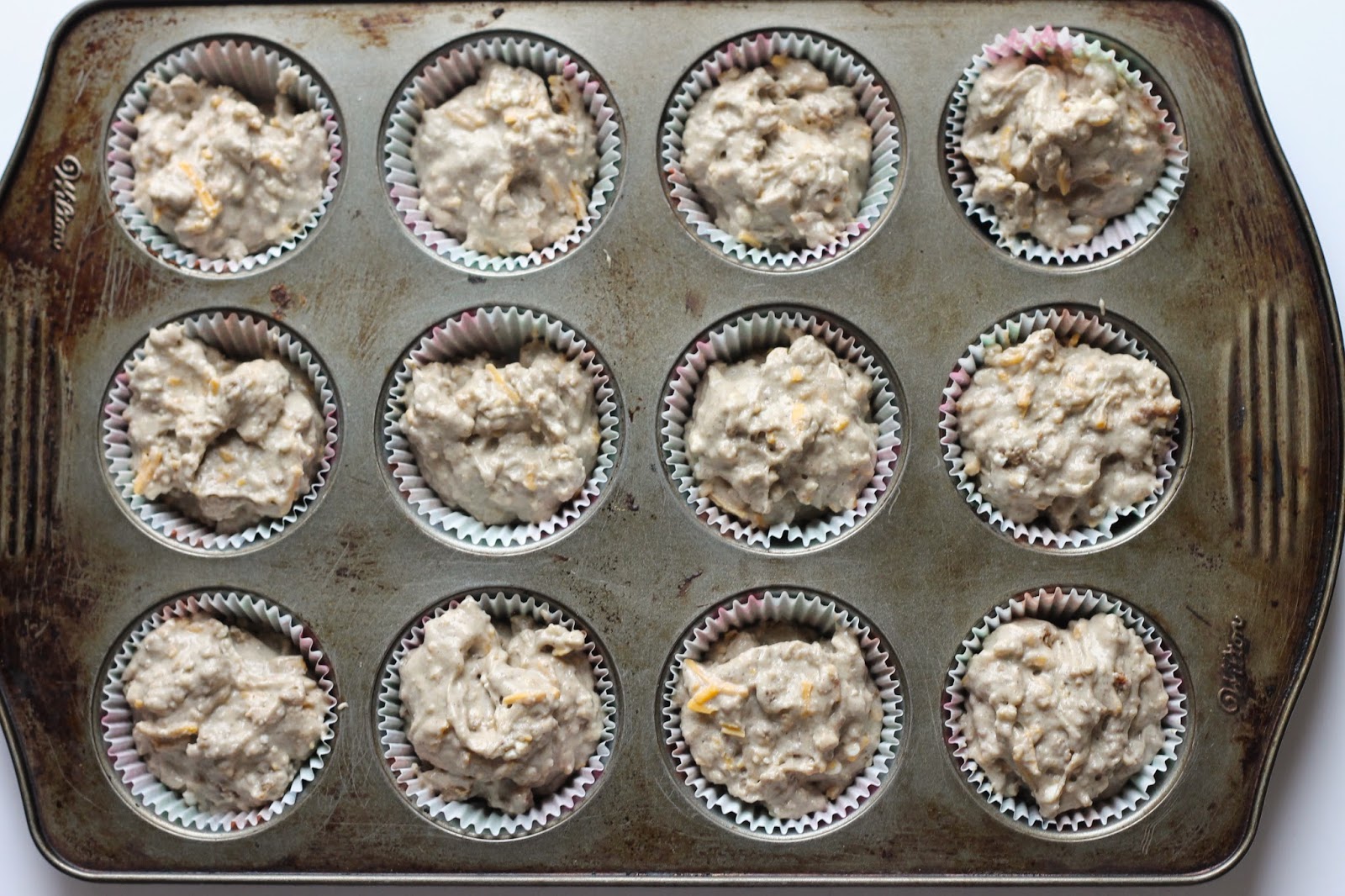 7. Put into prepared muffin tins.