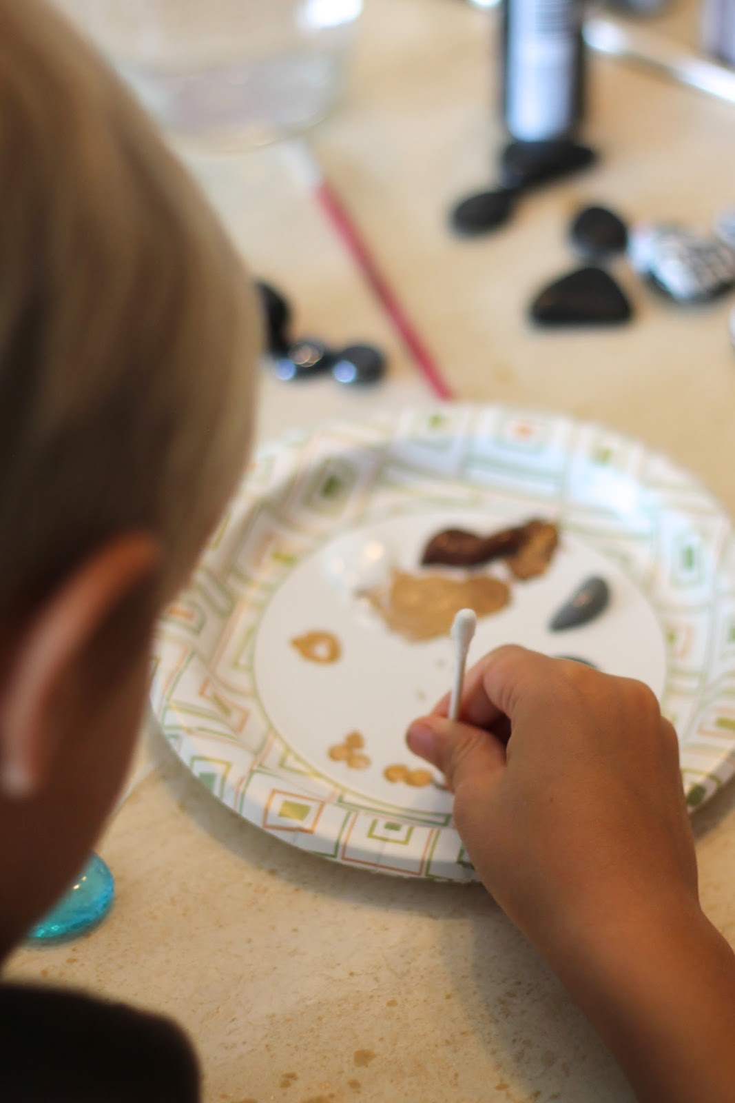 I let each of the boys tell me which kind of Pussycat they wanted to paint and which rock they wanted to use. We painted together at first.