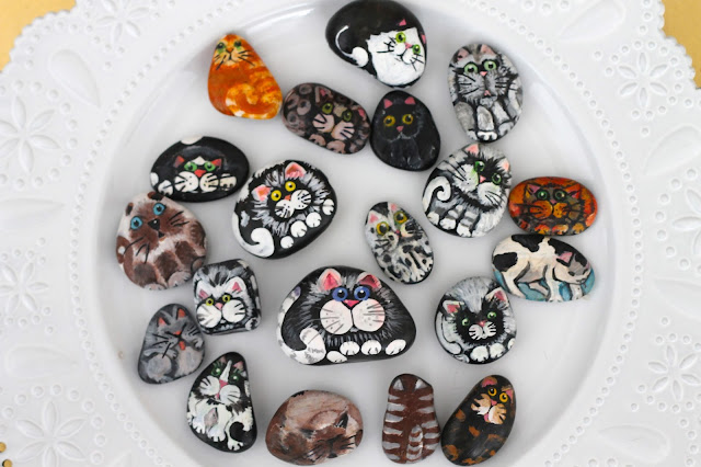 DeleteI absolutely loveeeee your cat rocks!!! I wanna try immediately! I love your tutorial with the step-by-step pictures, because at first your cat looked too detailed for me to be able to paint and then the pictures actually showed me I could try it out! I will certainly be making these when I find rocks that are large enough to be painted like that! May have to hit up home depot or something. I think this would be a great idea to paint tons of these and give them out at family get togethers or hide in the playgrounds for kids to find! Thank you so much for this post! Absolutely love it! Found it on craftgawker.com by the way! Can't wait to look at the rest of your blog!!! <3 Have a wonderful week!!! <3