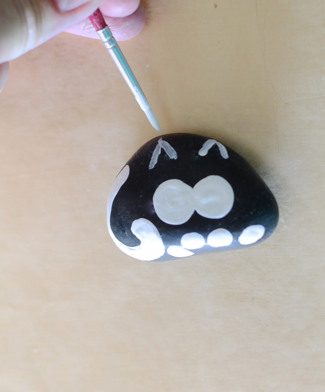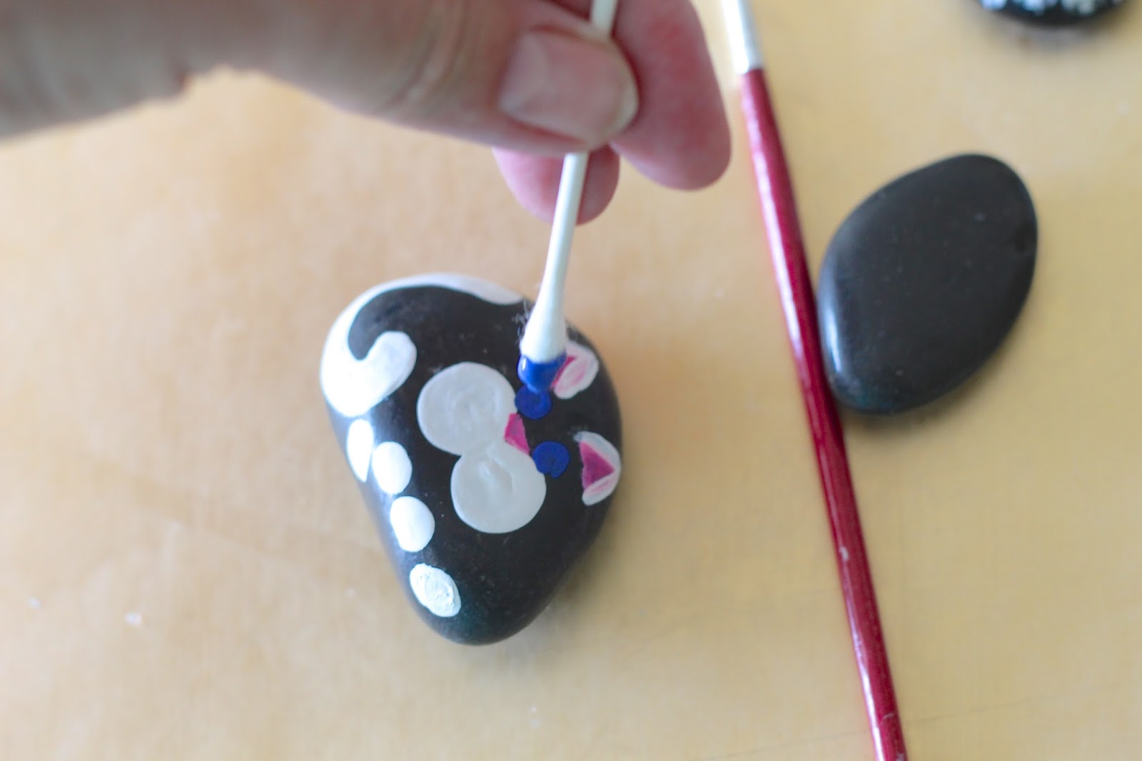 1. Dip a Q-tip in paint and swirl it down the side of the rock to make a curling tail.