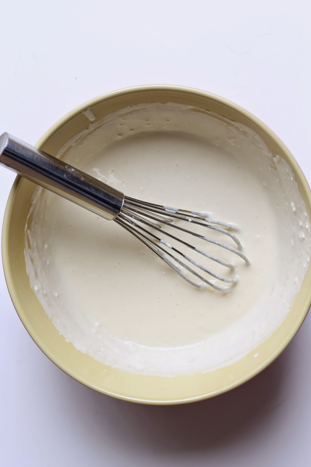 - Once the batter has been sitting 4 -12 hours, and is bubbly, add oil, eggs, sugar, and salt; mix well to combine.