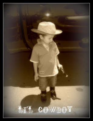 The picture above is my little grandson Elon, who really does want to grow up to be a cowboy like his grandpa. With five little grandsons, all adorable little cowboys, there's probably not much point in my post title, but, well, you get the idea :)