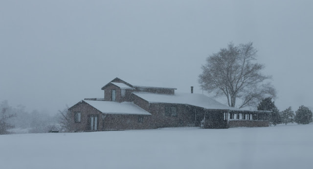 I decided I would post a little glimpse of our life this week. Here is our weather report: We have been getting snow every 3 or 4 days. I keep thinking perhaps there will be enough to pull us out of this drought this time, and we can get on with spring. We get 3 or 4 inches each time. We probably need a couple of good snows of 1 or 2 feet to begin making a dent in the dried up ground. But this looks pretty doesn't it, and every little bit helps to be sure. We've been keeping a nice fire burning in the wood stove and making plenty of soup.
