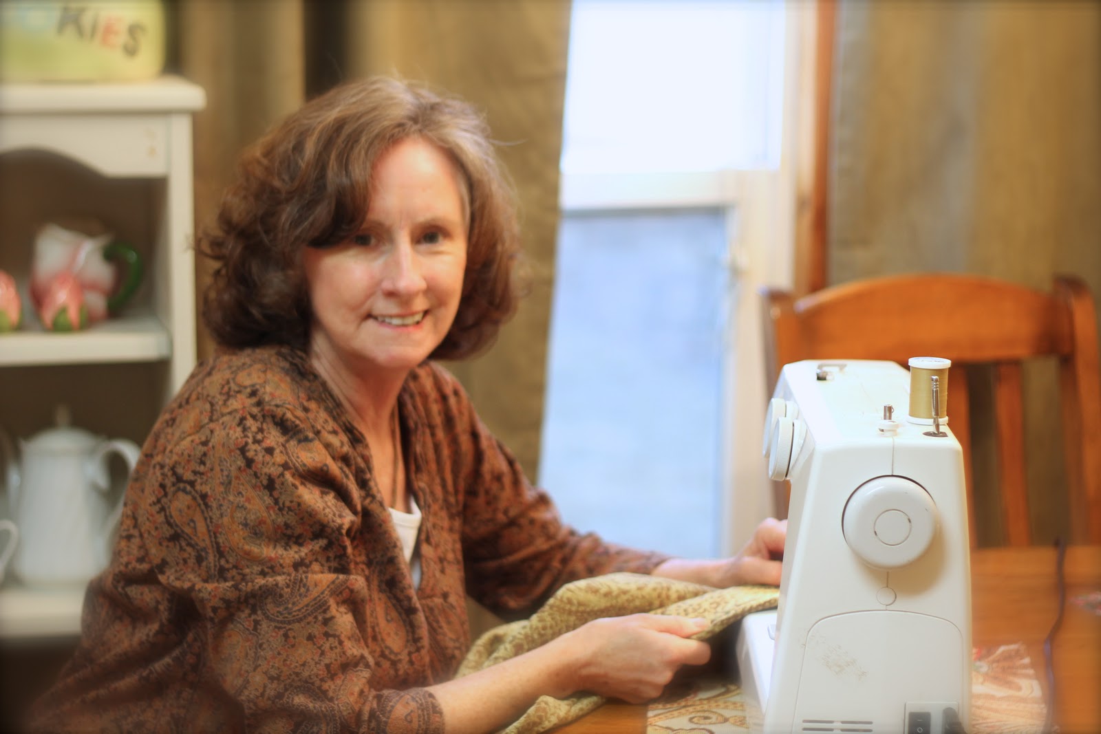 I went over to her house on Saturday to help her sew some drapes for her bedroom.