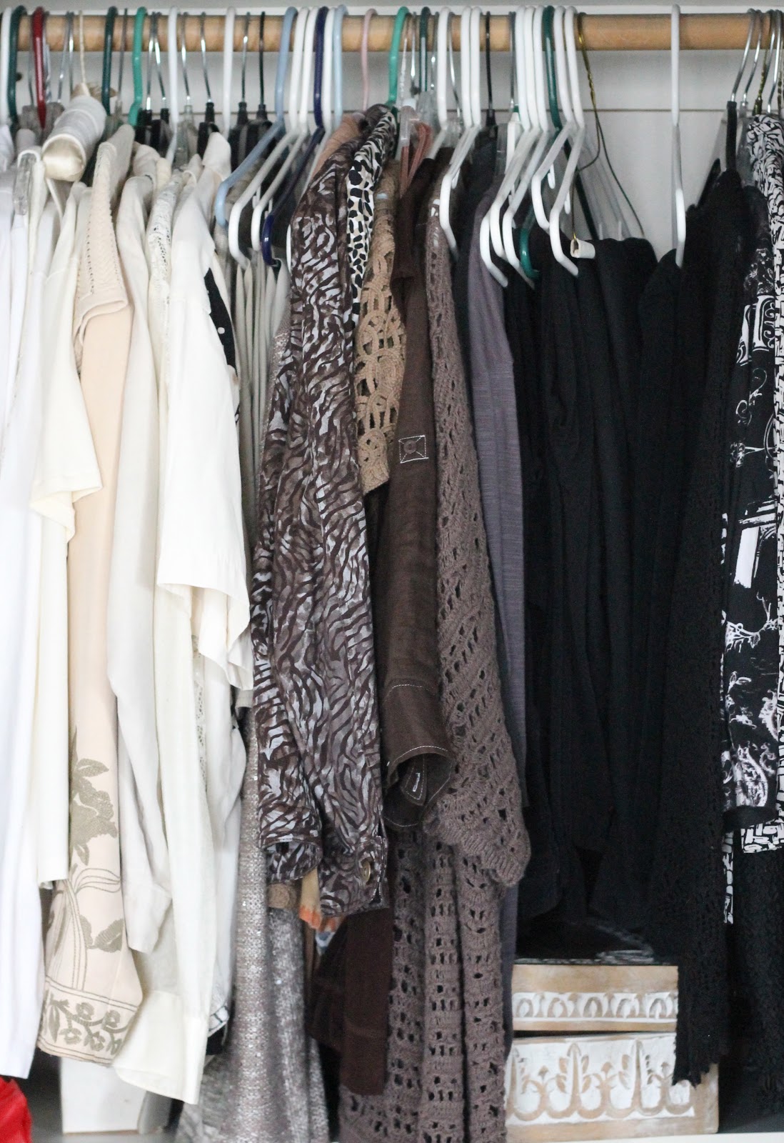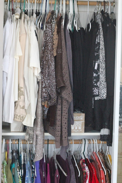 I was so blessed with the new clothes, that I even color coordinated my closest. Can you believe that? I have never done that before, but it seemed like such a good idea when it came into my head, because it will be easy to put things together now. I won't have to hunt through looking for and trying to find something to go with something else.