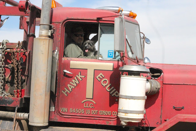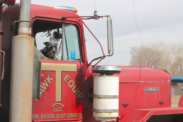 Dog's love trucks.