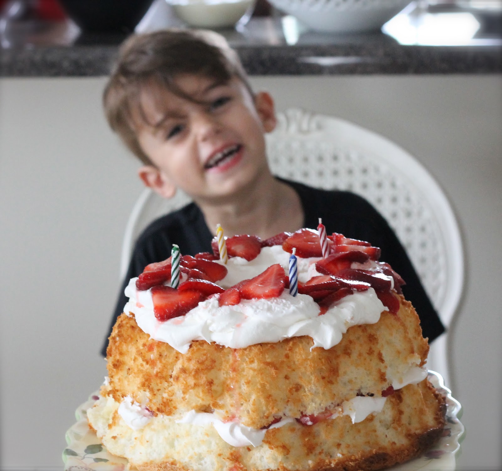...but he's not. He's having a birthday. And he's very happy about cake and presents. He talked about his birthday all week in anticipation, and without shyness... he was so cute. He wanted a strawberry cake and a blue car. Himilce made him a beautiful strawberry cake, and we were happy to be able to get him a blue car (forgot to get a picture of the blue car).