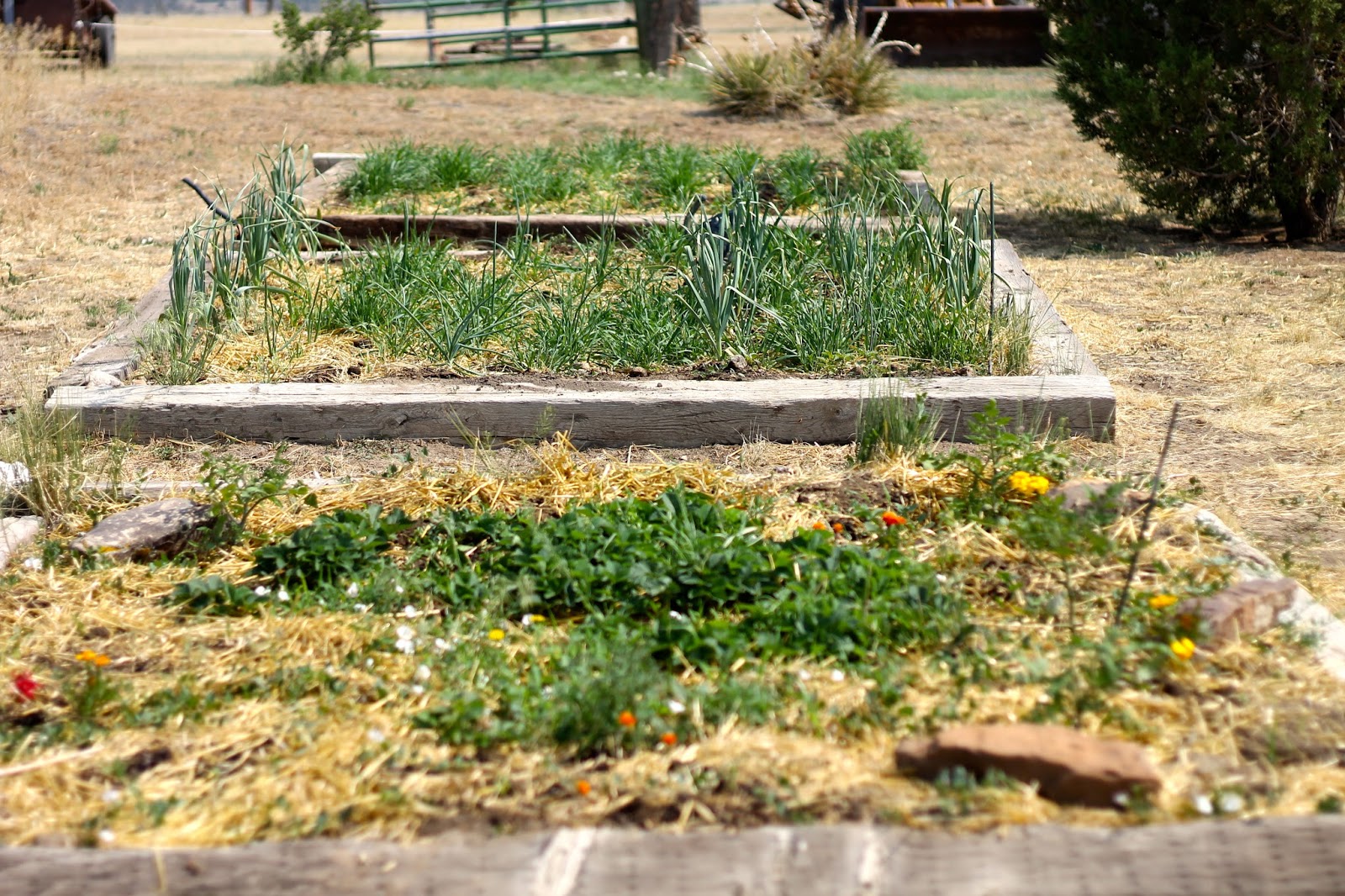 My garlic is doing really well;  I planted it last fall; So far the grasshoppers haven't touched it either. The onions are coming along nicely.