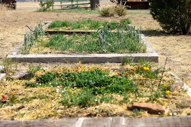 This year in the garden, we decided to downsize.  Luke is in Oregon now, and with Steve's surgeries this winter and spring, we decided to go a little easier.  But life seems blank without growing something in the summer months doesn't it?  So we have planted in the 3 small beds up near our house.   It is nice to have them, but the battle rages  here in Colorado.  Grasshoppers, draught, scorching wind and fire have waged war. We have wells on our property that are a part of our business, and you would think with "that" being so, we would have plenty of water for our gardens.  But those wells are not close at hand for our use.  Our house and garden are connected to a shallow hand dug well, that, while it provides ample for our household, does not have quite enough to suffice for lawn and gardening projects when there is a drought.   Even in good wet years, we cannot manage the lawn from our well (yet in those wetter years the lawn is well watered by the Lord).   It is a little bit of  "The cobbler's children have no shoes" scenarios.  so,  our garden and yard struggles when we have drought.  The drought is very bad right now and fires are everywhere; it feels like the State is on fire.   This evening when we were driving home, there was so much haze and smoke covering the sky, that it seemed as if we were on another planet in a science fiction movie.  It has been very sad and sobering to think of how many people have lost their homes in Colorado Springs (over 500 at this point), and fires still going all over the State.  Such strange and sad days.  Gardening helps generate life, not only in the ground but in ourselves, and is always my way of  regenerating every summer... even if it is  a strain and a struggle.
