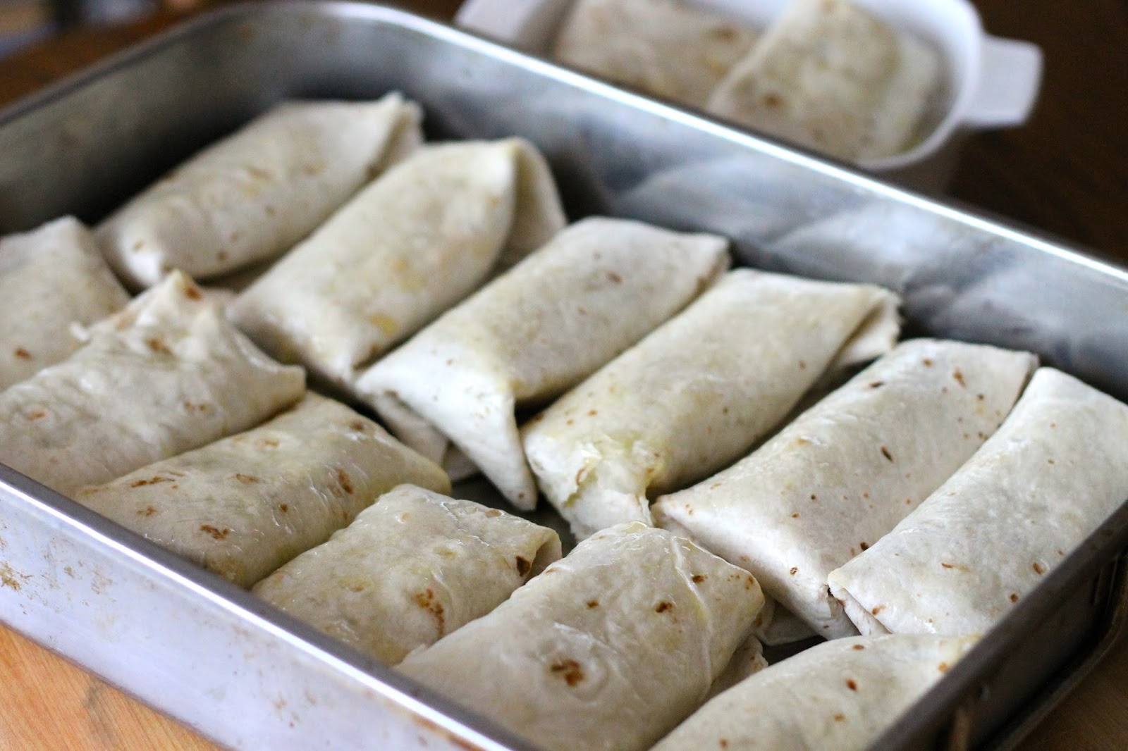 Add a little (or a lot) of the green chili and cheese to each burrito.