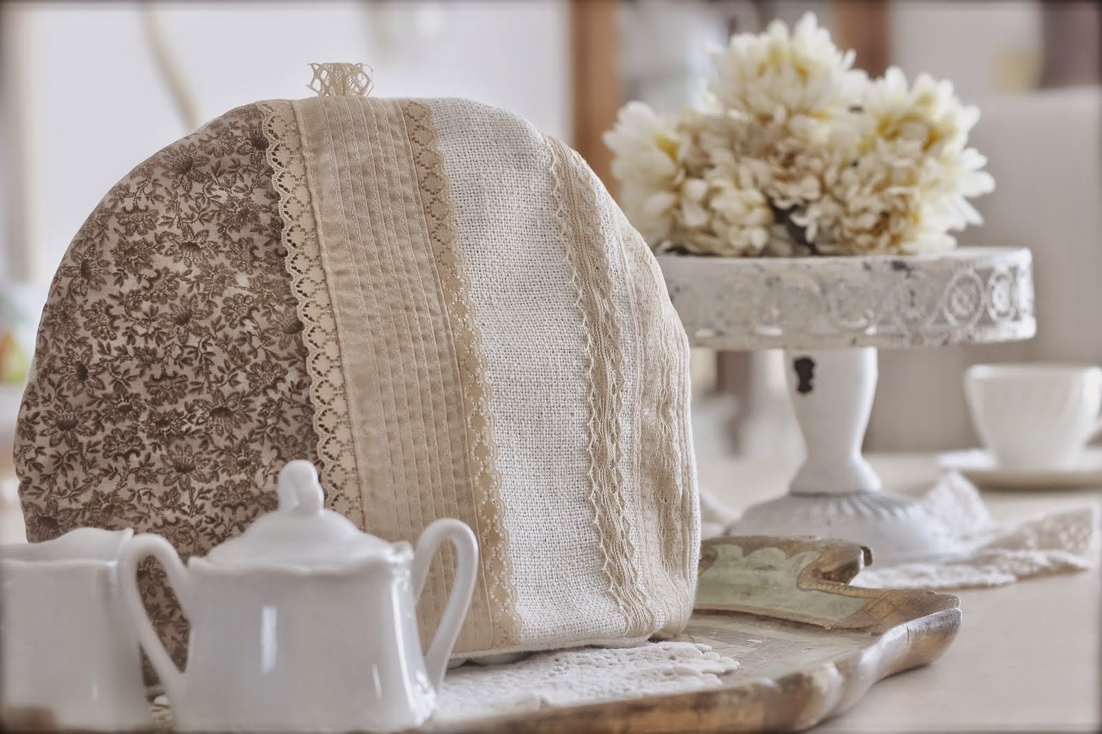 Good Morning Every One. I wanted to share a give away with you that my friend Bevy is doing on her blog "Treasured Up and Pondered". She is giving away one of the tea cozies I made last spring, and I thought you all would like to pop over there and read her lovely blog and enter her give away. She always posts such sweet thoughtful posts and beautiful pictures, recipes, happenings, she sews some beautiful bags and shares with delightful guest bloggers that you will appreciate. I know you will love getting to know her.