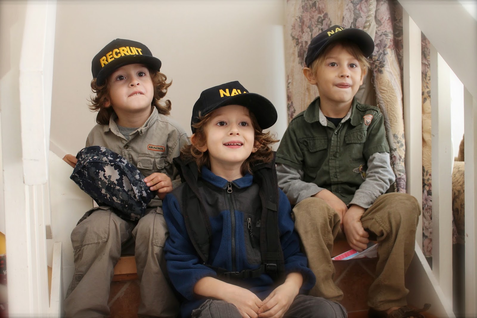 Ezra (left) and Zane (right) are Marie and Jon's boys, and Winston (in the middle), is Elizabeth and Benjamin's boy.