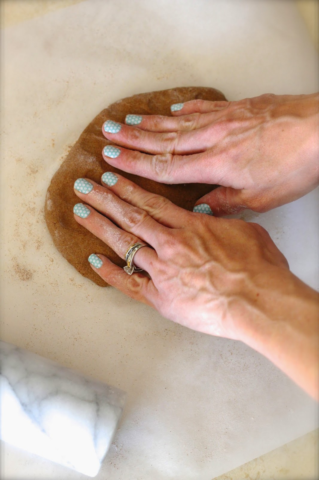 Reserve a 1/2 cup of the mixture to dust the bottom of your work space with, and set aside.